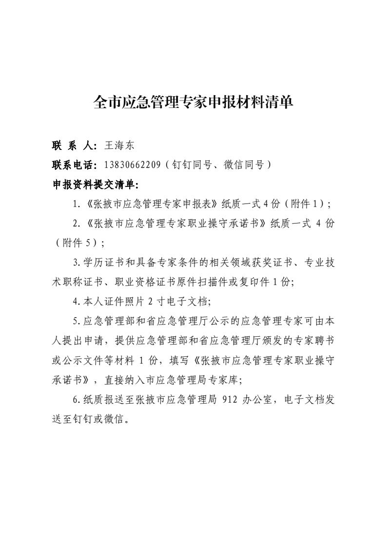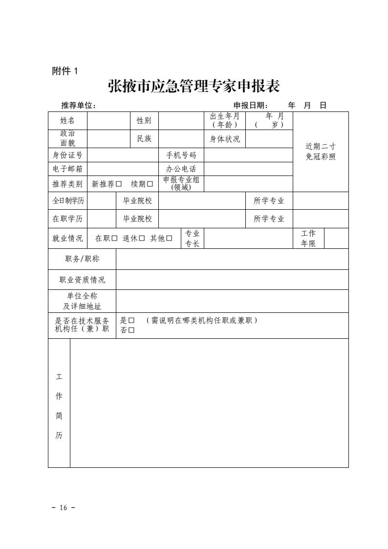 《张掖市应急管理局应急管理专家管理办法》附件.doc