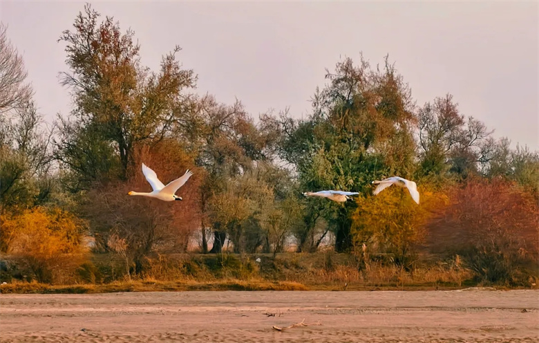 碧水润泽,飞鸟翔集。如今的黑河湿地不仅是大天鹅千年不变的越冬驿站,更成为展现人与自然和谐共生的生动实践。