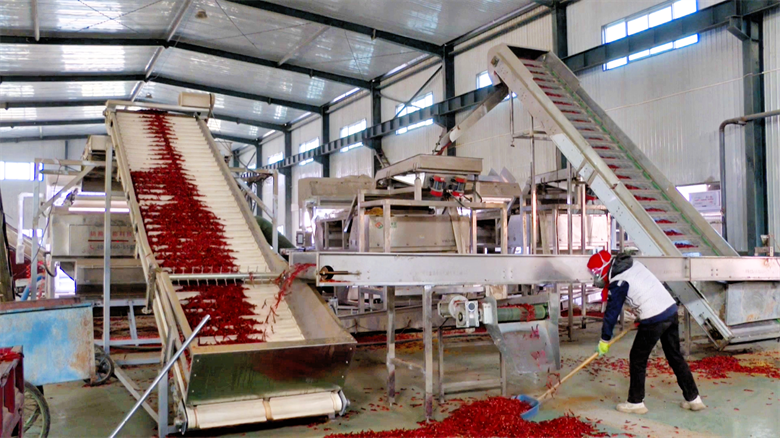 位于南华工业园区的甘肃赛贝露生物科技有限责任公司生产车间内,生产线正高效运转,对新鲜辣椒进行精深加工。经过清洗、切割、烘干等一系列标准化工序,原本普通的鲜椒实现了华丽蜕变,转化为辣椒粉、辣椒酱等多元化、高附加值产品。据该公司办公室负责人殷晓娜介绍,目前企业已开工生产约半个月,产量达到1000多吨,产品主要销往山东、四川等地。