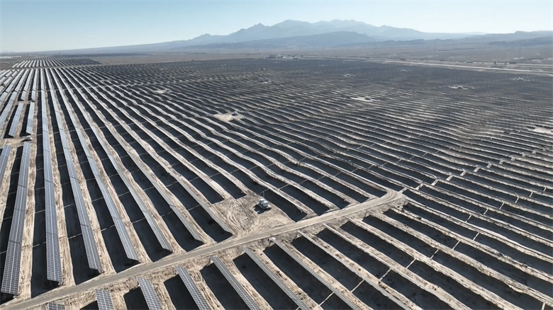 在位于高台县北部滩的陇和光伏电站,光伏板阵列如一片“蓝色海洋”,在阳光下熠熠生辉。这一于2024年7月开工建设、2025年5月31日正式并网发电的重大项目,总投资达4.63亿元,总装机规模为10万千瓦。项目配套建设了15MW/60MWh储能系统及附属设施,并新建一座110kV升压站,所发电能通过架空线路输送至330kV建泽汇集站,为电网注入清洁电力。“截至目前,电站累计发电量已达4600万千瓦时,”高台陇和光伏电站站长殷明瑞介绍,“与同等发电量的火电相比,该项目每年可节约标准煤约5.8万吨,并能有效减少多种大气污染物的排放,环境效益与经济效益显著。”