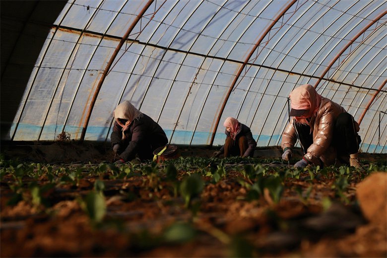 寒冬时节,高台县宣化镇利号村的大农高新蔬菜专业合作社温室里却暖意融融。翠绿的毛芹、攀援的西红柿藤、水灵的红萝卜长势喜人,十几名工人正在忙碌地移栽菜苗。合作社负责人孟学林仔细查看着今冬第一茬芹菜的采收情况,黝黑的脸上洋溢着踏实与笃定。