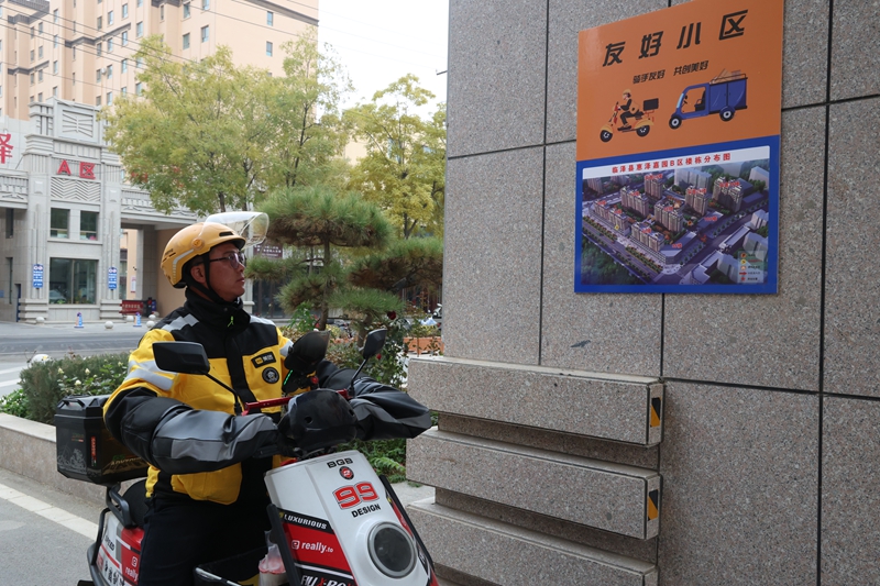 除此之外,临泽县积极推进“友好场景”建设,探索实践数智赋能,因地制宜完善不同场景服务网络,粘贴友好标识、绘制楼栋分布图、完善楼层信息、规划专属停车区……下大力气解决骑手进门难、找路难、停车难等问题。在外卖配送范围内的小区,骑手可畅通无阻进出,快速完成配送任务,并且各小区内均设置有“骑手休息区”,骑手们在工作之余能有个地方“歇一歇、聊会儿天、喝口水”。
