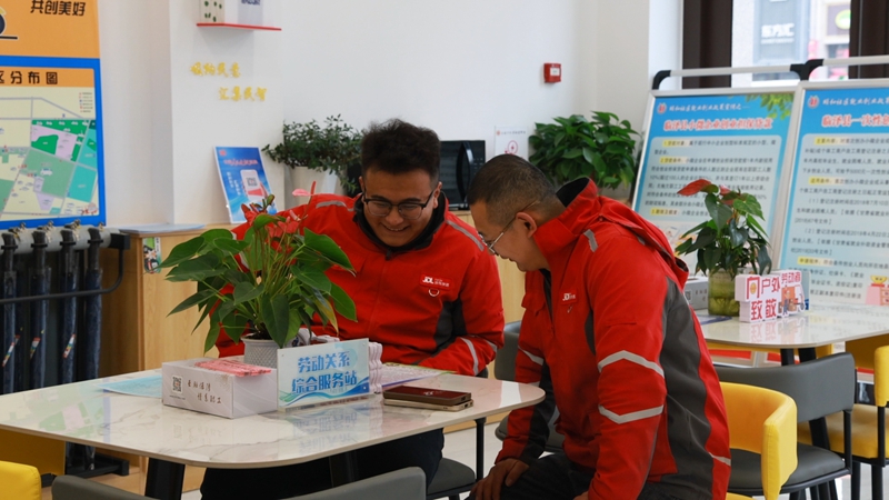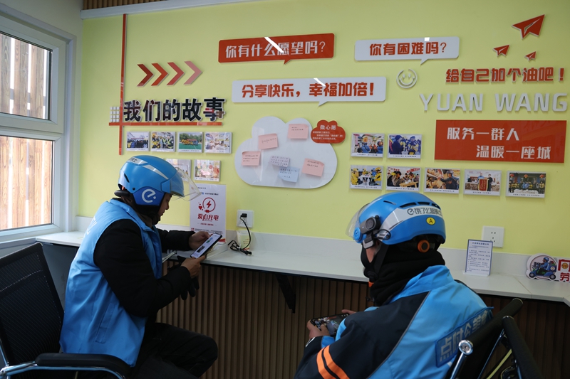冬日傍晚,颐和社区新兴领域党群服务中心里暖意融融,快递小哥叶泽旭和同事捧着热乎的茶水,聊着一天的收获。这个温馨的空间是他们奔波途中的“充电站”:“暖‘新’驿站更像是我们的第二个家,我们平时送货送累了、手机没电,或者这会没有太多的工作,我们会过来待一会,给手机充会电,和同事聊聊天,这里也有热水供应,暖心的举措和服务让我们感到非常贴心。”