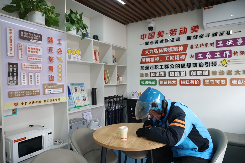 走进颐和社区新兴领域党群服务中心,微波炉、应急药箱、手机充电站一应俱全,墙上还贴着骑手手写的“微心愿”和寄语,从“夏季送清凉”到“冬季送温暖”,就业创业、文化休闲等十几项服务一应俱全。