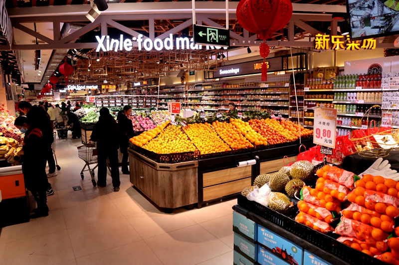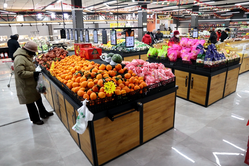 同样,临百超市也做足了节日期间物资供应准备,米面油及肉制品等主要生活必需品的供应量都有大幅增加,以满足节日市场供应需求。顾客张莉说:“元旦就要到了,在这儿买点吃的喝的,这蔬菜、水果也很新鲜,服务也很周到,种类也很丰富。”