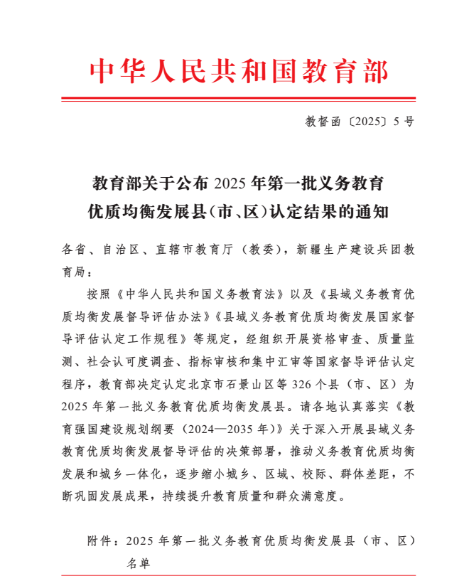 强化政府主导,持续夯实教育发展根基。教育投入实现“两个只增不减”,2022—2024年一般公共预算教育支出逐年增长。教师队伍建设不断加强,近三年补充教师115名,推动交流轮岗,实施素养提升计划,保障义务教育教师平均工资收入不低于当地公务员平均工资收入水平。深化“五育并举”,构建“思政铸魂、科创赋能、体美劳融合”育人体系,促进学生全面发展。