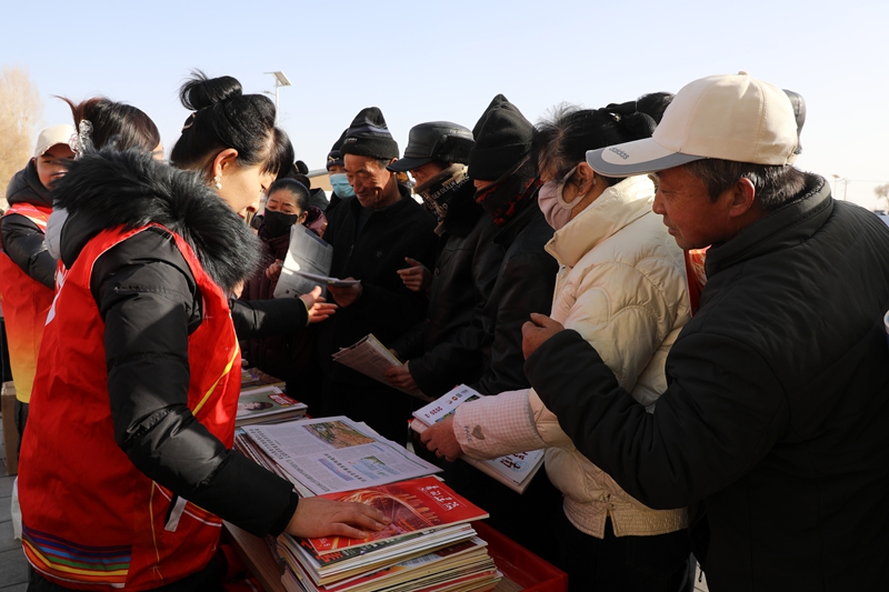 县图书馆同步开展赠书惠民活动,志愿者王婧介绍道:“今天,我们向新华镇的父老乡亲赠送养殖方面的图书500余册,涵盖养殖及病虫害防治等实用技术,还赠送了报纸、期刊,并为参加乡村示范领读活动的青少年赠送少儿图书40多册,以此丰富乡亲们的精神文化生活,助力乡村文化振兴走深走实。”
