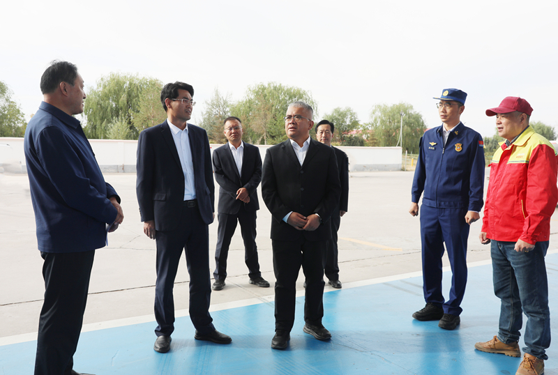 张鹏、张晓龙一行先后来到张掖和田石油销售有限公司民乐分公司、工业园区客运中心、乐民新城盛鲜仓生活超市、甘肃青龙管业有限责任公司等地实地督导检查,详细了解危化品安全准入、消防器材配备、交通安全管理、商品供应、企业安全风险管控等情况,并就做好节日期间安全工作提出具体要求。