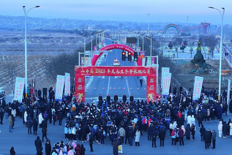12月30日,山丹县2026年庆元旦“体彩杯”冬季长跑比赛在城市新区花海健身步道与佛山大道交叉路口鸣枪开赛。近千名来自全县各乡镇、机关单位及学校的选手迎风奔跑,以拼搏姿态喜迎新年,充分展现山丹儿女昂扬向上的精神风貌。县委常委、宣传部部长展宏宙宣布比赛开赛,县领导杜万善、张克孟、李凤武出席活动。