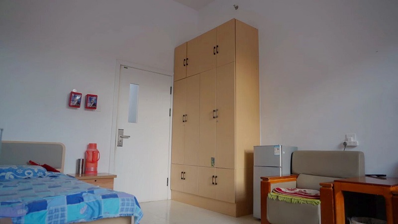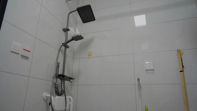 改造工程紧扣老年人生活刚需全面焕新升级。走进公寓,焕然一新的卫生间让人眼前一亮。据了解,公寓内卫生间重新铺设墙面瓷砖1495.87平方米、地面瓷砖245.22平方米,防滑耐磨材质为老人日常活动筑牢第一道安全防线。淋浴区按需配置恒温花洒,坐便器一侧加装的防滑扶手更是从细节处呵护着老人起身、落座的每一个瞬间。与此同时,公寓统一更换适老标准的新床,配套的实用衣帽柜让衣物收纳井然有序,大幅提升居住幸福感。床头、卫生间等关键区域均设置智能呼叫系统,一旦发生紧急情况,老人只需轻轻一按,工作人员便能快速响应、精准处置;新增的节能饮水机随时供应安全饮用水,让老人喝水更方便、更安心,全方位补齐了服务设施短板,让养老生活更有温度。