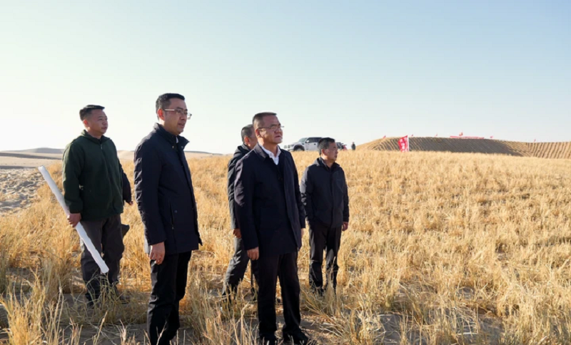 在大河乡,陆思东先后走进乡林长制办公室、应急物资库,仔细查阅林长制责任体系建设资料及巡林日志,详细了解大河乡林长制组织架构搭建、管护区域划定、森林防火宣传覆盖及现场检查应急物资储备等情况。随后,他前往明花乡林草湿荒一体化保护修复项目、3.27万亩工程固沙项目现场,开展巡林并察看工程推进进度,深入了解固沙技术应用、后期管护举措及生态效益发挥等情况,叮嘱相关负责人务必严把工程质量关,确保治沙成果经得起实践和历史检验。