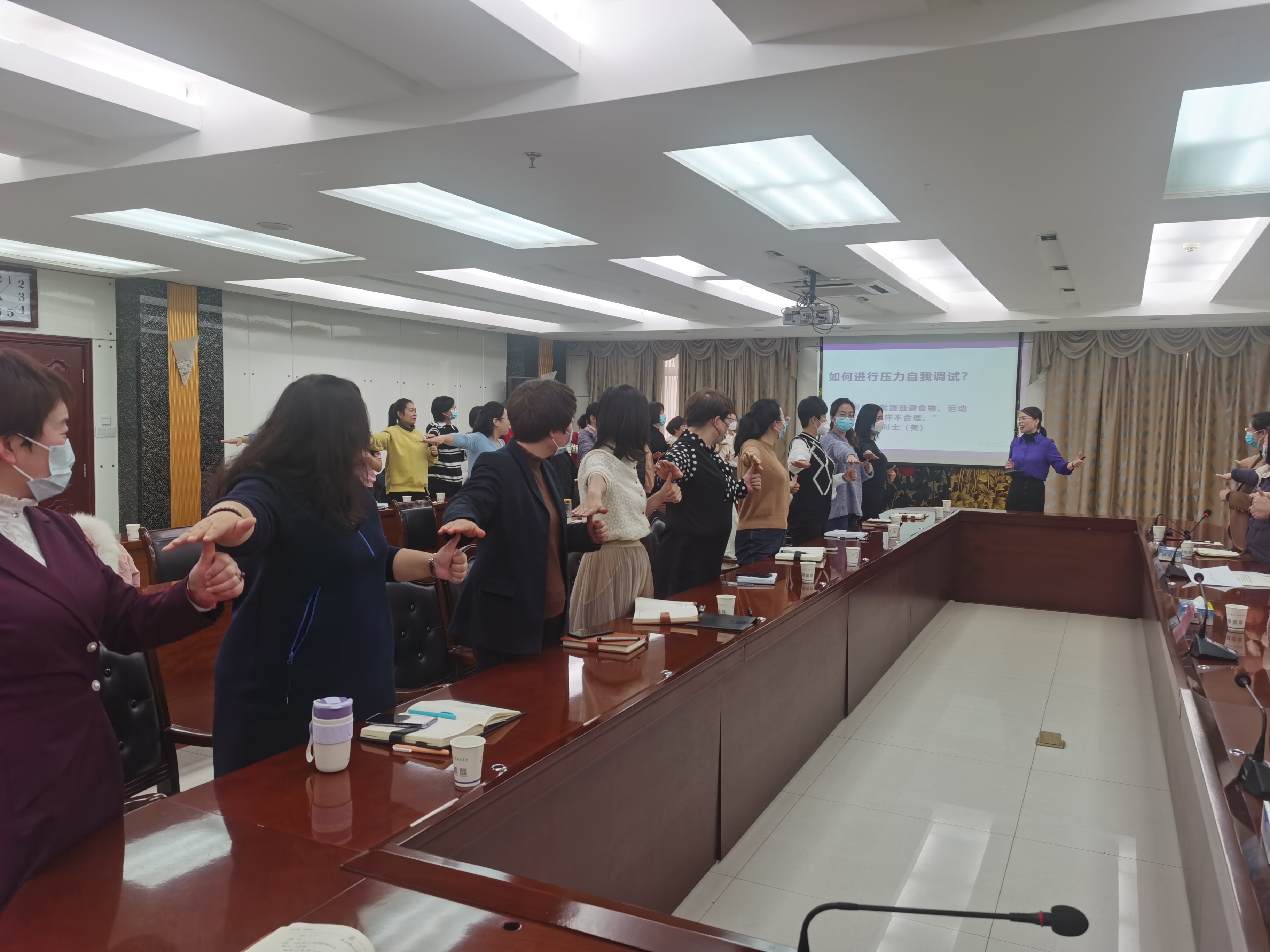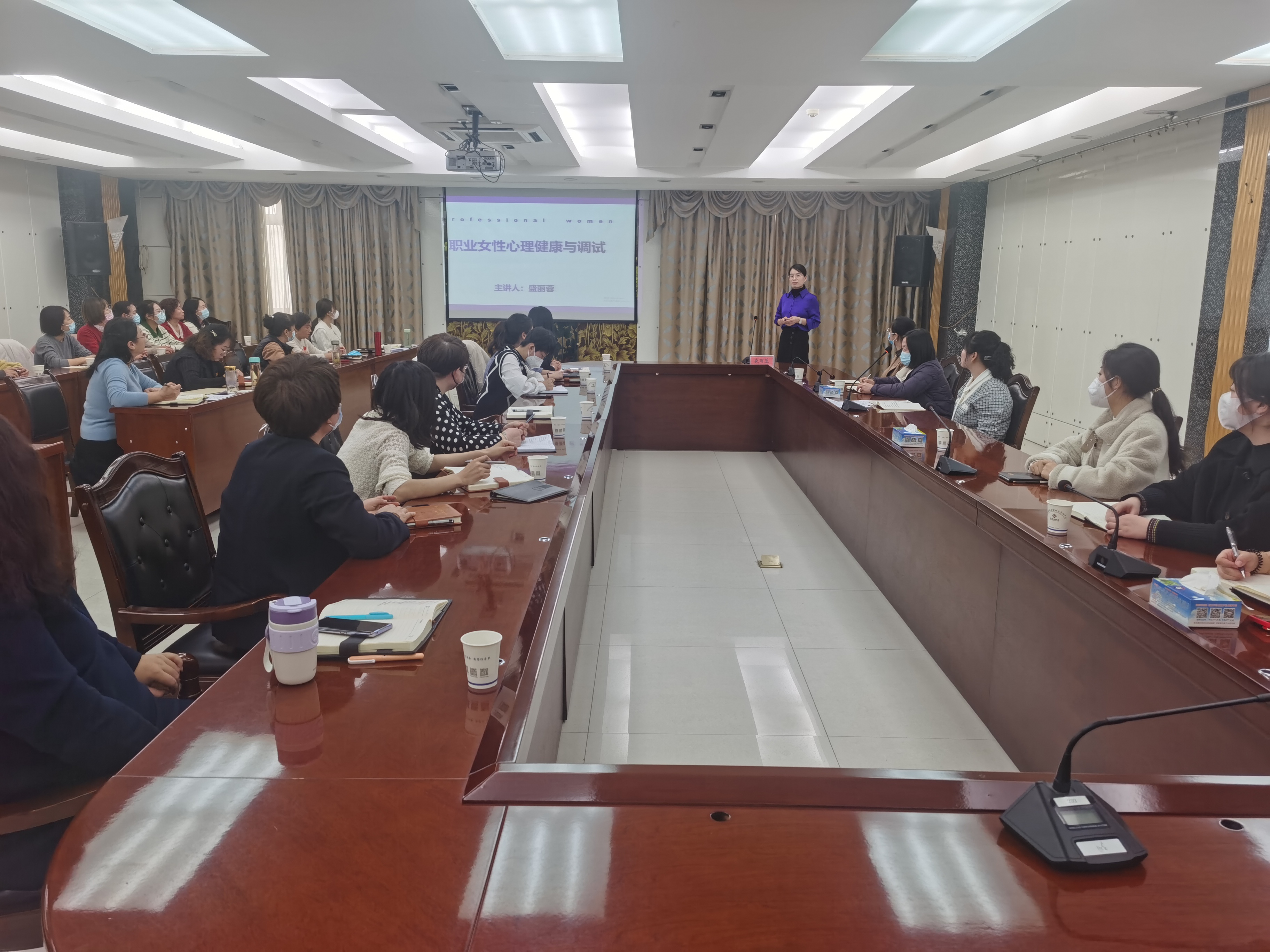 讲座中,盛老师以《职业女性的心理健康与调试》为题,重点介绍了3大类常见的心理不适症状、影响心理健康的因素,深入分析了职业女性产生心理压力的原因,详细讲授了职业女性如何塑造良好思维模式提升对事物的理解层次,如何接纳和疏导负面情绪和压力,如何改变认知塑造阳光心态,如何处理自我与他人、与工作、与家人的关系,促进家庭和谐、工作进步。讲座实例生动丰富、教学互动精彩、语言幽默风趣,受到了大家的一致好评。