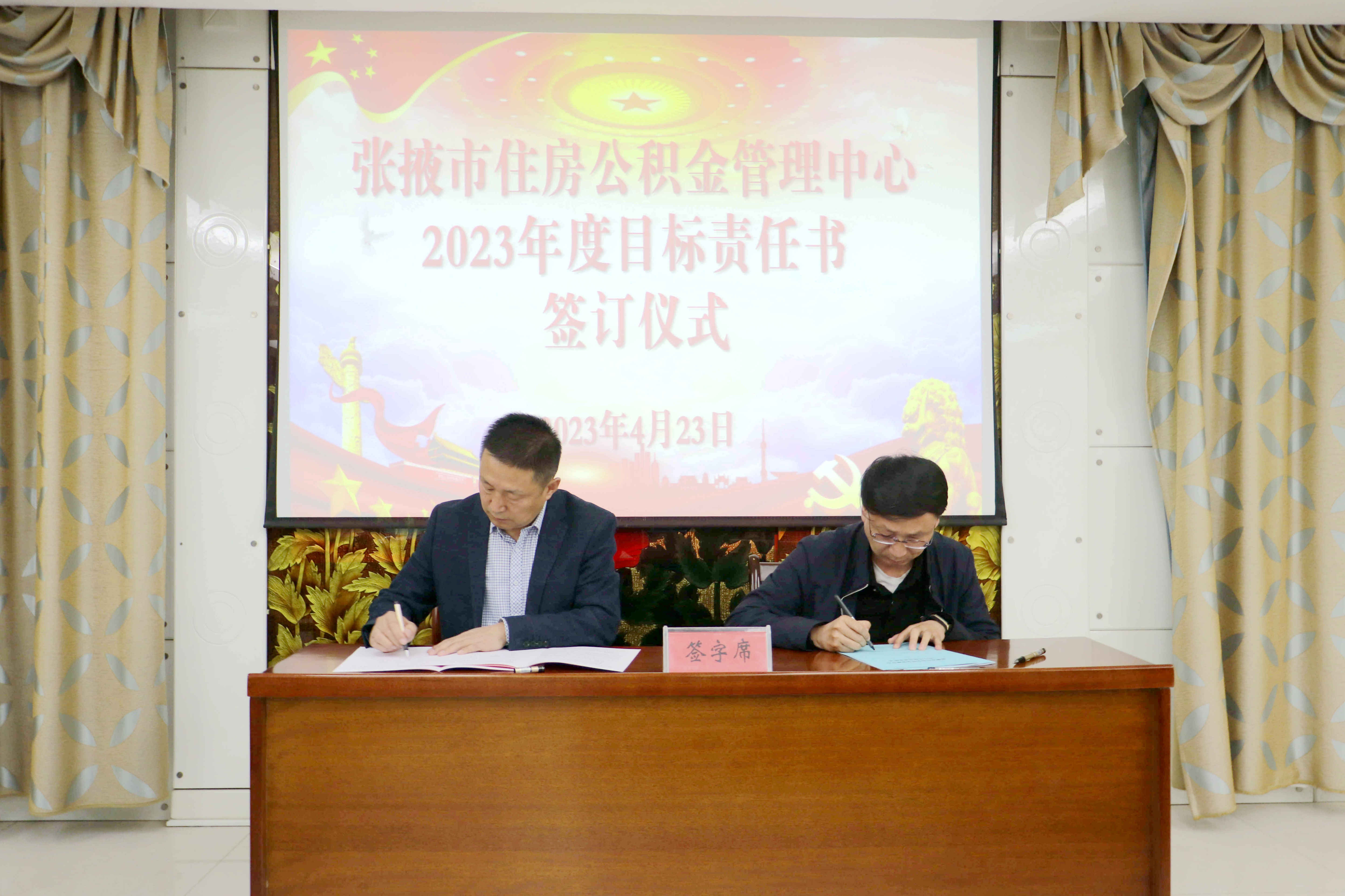 会议传达学习了全省住房公积金管理工作会议精神,宣读了《张掖市住房公积金管理中心2023年工作要点》;主要领导与各管理部签订了内部授权书和目标责任书,班子其他成员与分管科室签订了目标责任书,明确了年度重点任务和目标要求,传导了工作压力,促进了任务的落实。