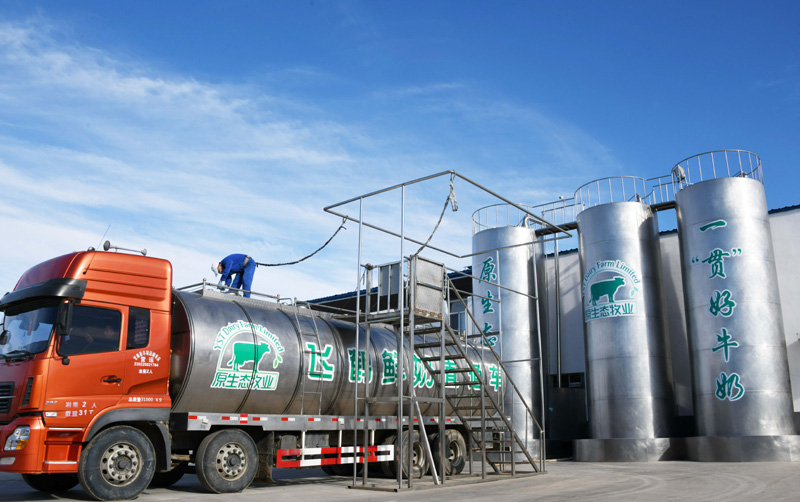 在黑龙江飞鹤乳业股份有限公司专属的甘南县瑞信达原生态牧场,工作人员在检查一辆刚装完鲜奶的全封闭低温安全运输车(2018年10月30日摄)。新华社记者 王建威 摄