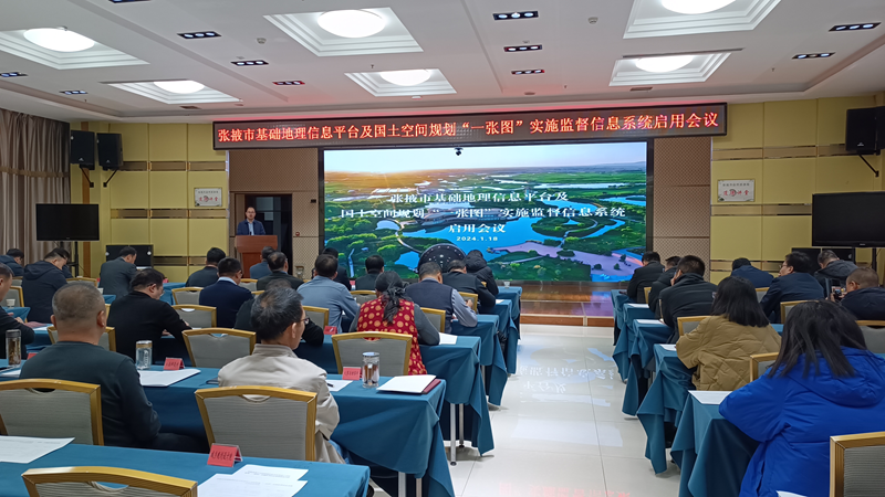 2024年1月18日,市自然资源局组织召开张掖市基础地理信息平台及国土空间规划“一张图”实施监督信息系统启用会议,并同步开展了系统应用培训。该系统为市自然资源局委托甘肃省基础地理信息中心建设的市县一体统建的信息系统,它的上线启用,将为全市三级三类国土空间规划编制、审批、实施、监测评估预警和实施监管全过程提供强有力的信息化支撑。市政府党组成员、副市长郝效冬同志应邀出席会议,市自然资源局各科室、事业单位负责同志,六县区自然资源局主要负责同志、分管负责同志和具体工作人员参加了启动会议。