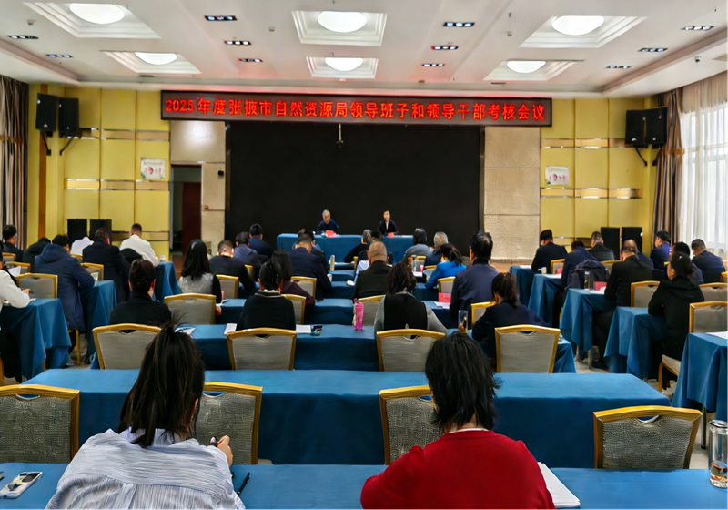 根据省自然资源厅统一安排部署,近日,省自然资源厅第四考核组一行莅临张掖市,对市自然资源局及所属县级事业单位进行2025年度领导班子和领导干部考核。省自然资源厅第四考核组组长及考核组成员、市自然资源局机关及局属事业单位全体干部、各县区自然资源局主要负责同志、干部群众代表、服务对象代表等80余人参加考核会议。