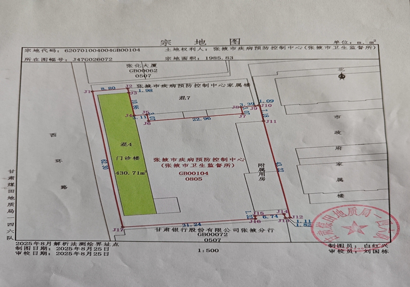 宗地一:位于甘州区西环路22号,宗地面积1985.83平方米,未办理土地手续,规划及实际用途为机关团体,权利人为张掖市疾病预防控制中心,使用权类型为划拨。