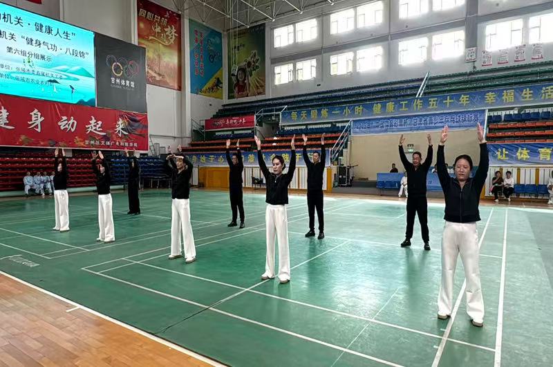 二是传统养生健体魄。积极组队参加了由市委直属机关工委和市农业农村局联合举办的“活力机关 健康人生”健身气功“八段锦”展演活动。八段锦作为中华传统养生瑰宝,动作柔和缓慢,松紧结合,对调节身心、增强免疫力具有良好效果。参演干部职工利用工余时间认真排练,在展演中动作整齐划一,形神兼备,圆满完成了展演任务,赢得了好评。通过参与此次活动,大家不仅学习掌握了科学的健身方法,培养了健康生活习惯,也在古朴韵律中陶冶了情操,提升了身心健康水平。