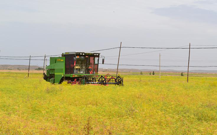 近日,山丹老军乡5000亩茴香喜获丰收,散发着阵阵清香。在老军供销社领办的农民专业合作社茴香种植基地里,大型收割机来回穿梭,成熟的茴香随风舞动,农机手正忙着收割、搬运、晾晒,呈现出一片繁忙景象。