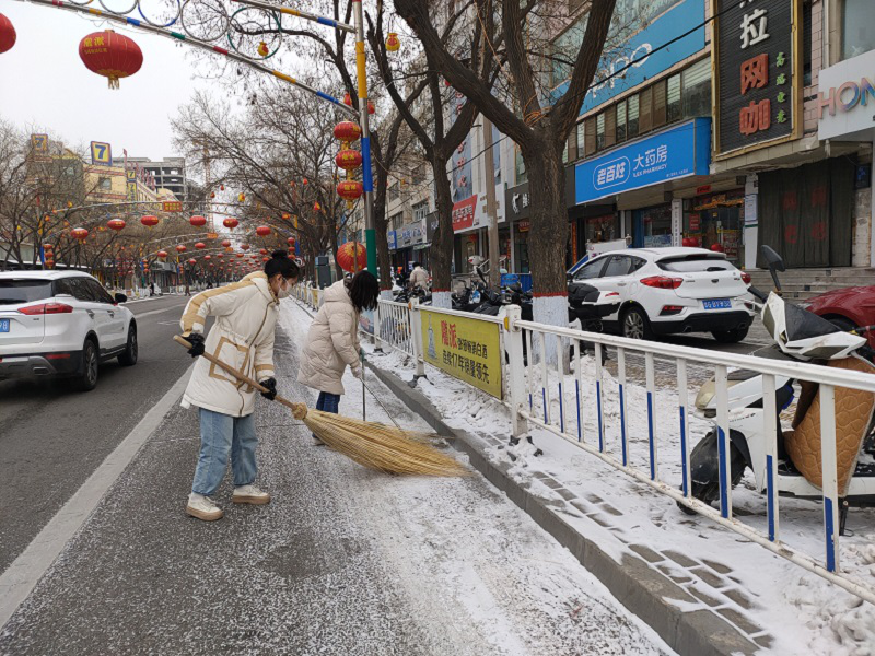 行动现场,我社干部职工不惧低温严寒,纷纷拿起铁锹破冰除雪,分工明确、干劲十足。为人行道、非机动车道清理出一条条安全的“绿色通道”,为寒冷的冬日增添了一分温暖和正能量。