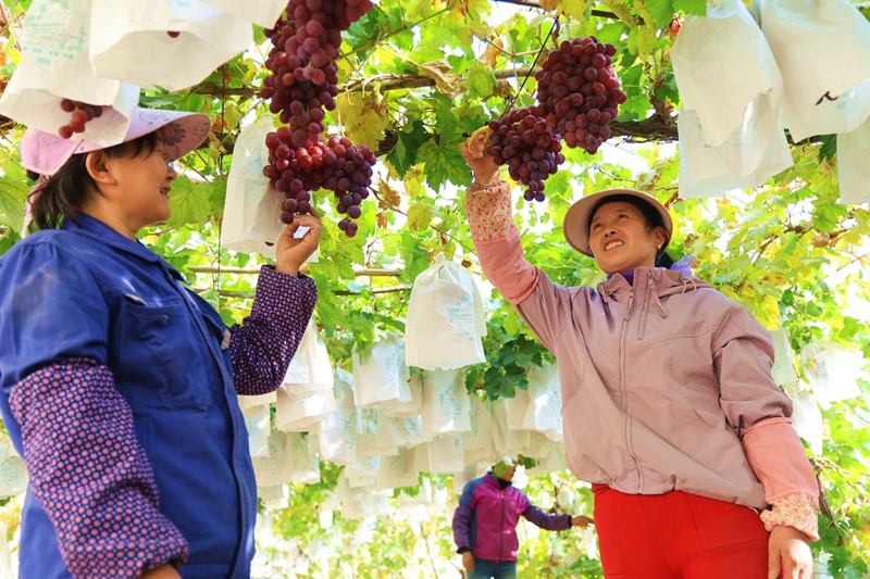 隆冬时节,室外凛冽的寒风吹落了白杨树上被深秋遗忘仅存的几片落叶,而临泽县新华镇银先葡萄专业合作社的种植大棚里却温暖如春。设施葡萄大棚里葡萄藤蔓上挂满了一串串晶莹剔透的葡萄,宛如紫玉垂珠,散发着诱人的果香,一派生机盎然的景象。