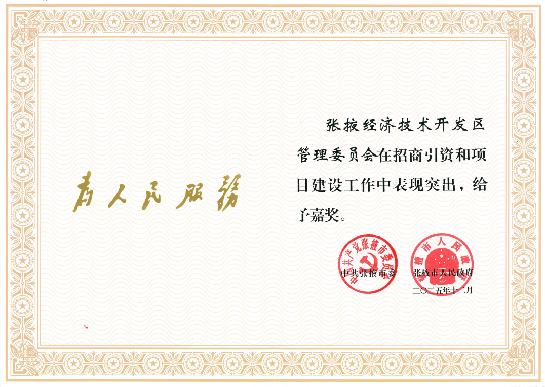 下一步,张掖经开区管委会将以此次获奖为契机,持续聚焦主导产业强链补链,创新招商模式、强化服务保障,全力推动招商引资提质增效、项目建设提速进位,为打造全国百强园区、助力区域经济高质量发展书写更加精彩的答卷。