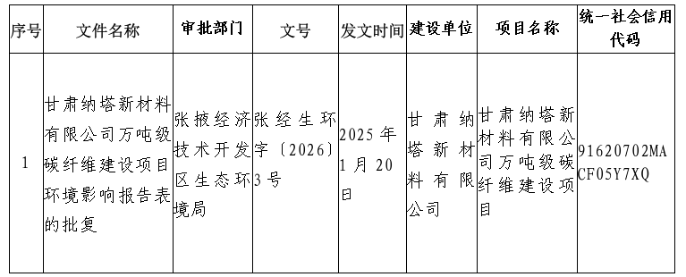 根据建设项目环境影响评价审批程序的有关规定,经审查,我局对下列1个建设项目环境影响评价文件作出审批决定。现将作出的审批决定予以公告,公告期为2026年1月20日-2026年1月26日(5个工作日)。