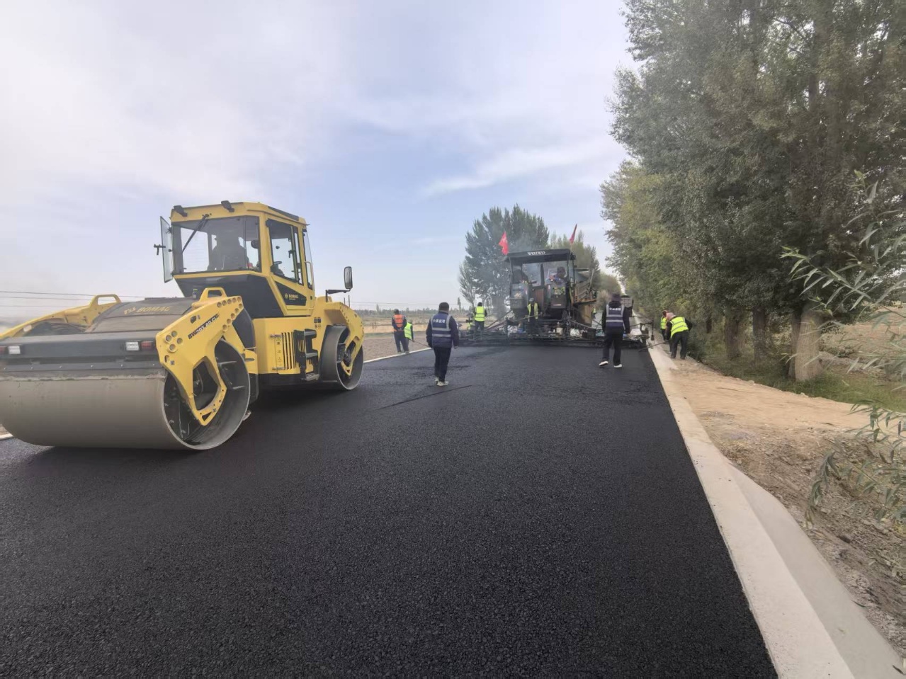 自今年7月25日项目开工建设以来,高台县交通运输部门紧盯工期目标,以领导包抓、专班负责、倒排工期、挂图作战等措施强化施工组织,全力保障各项节点工作高效推进。至目前,路基、桥涵、硬化路肩、水稳碎石基层、交安设施已全部完工,项目累计完成投资4320万元,总体形象进度达到66%,年内将完成沥青下面层铺筑,全面完成今年建设任务,明年7月底前项目将全面完工。