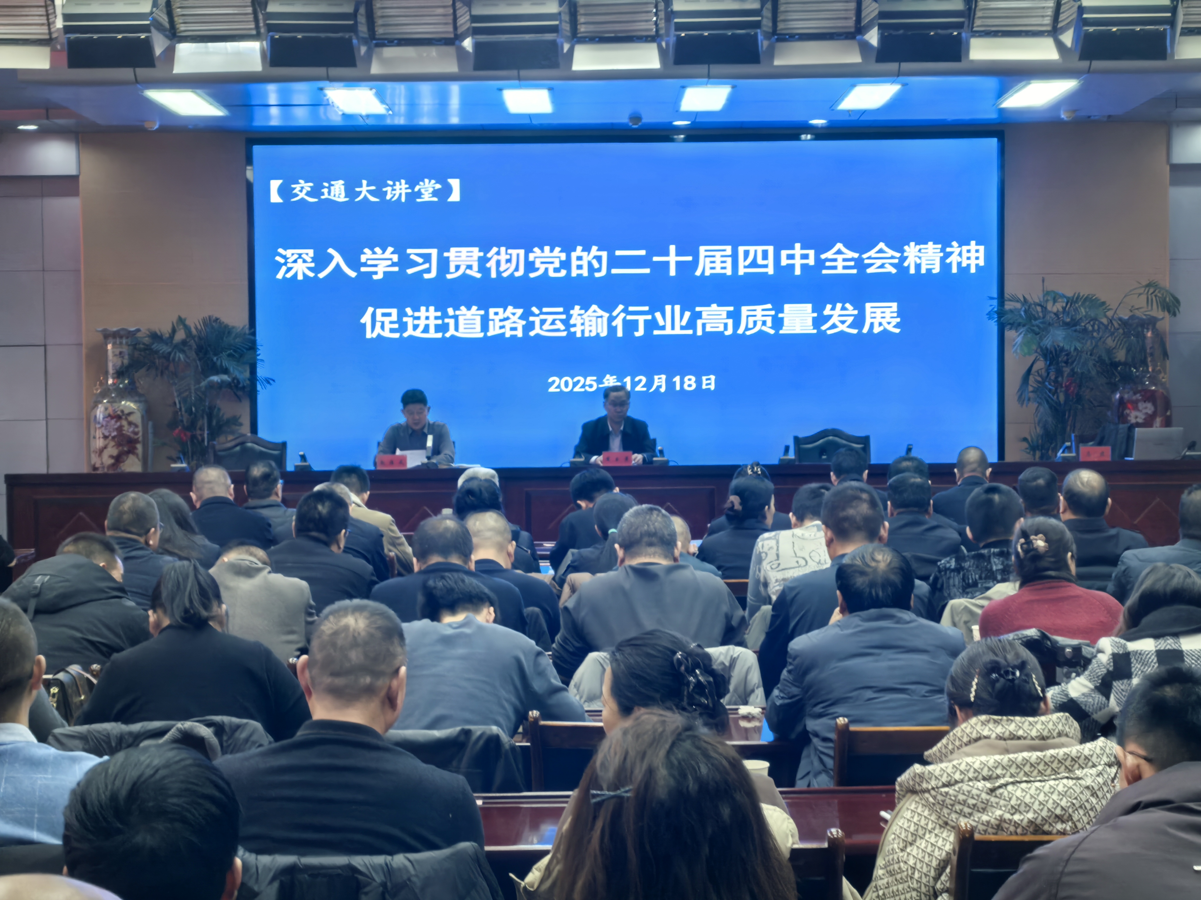 12月18日,张掖市道路运输管理局组织召开全市道路客运高质量发展专题培训会议暨2025年第二期交通大讲堂,本次培训以“深入学习贯彻党的二十届四中全会精神 促进道路客运高质量发展”为主题,全市各级交通运输主管部门、交通运输执法队相关负责同志和业务工作人员,道路班线客运企业、旅游运输企业、出租汽车运输企业、公交车企业、客运站负责人等共计120余人参加培训。