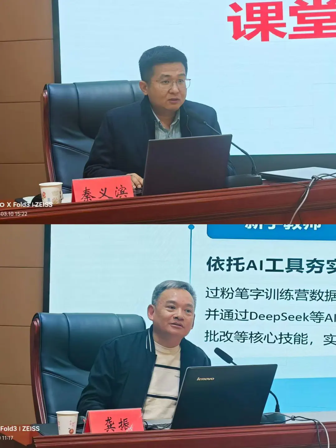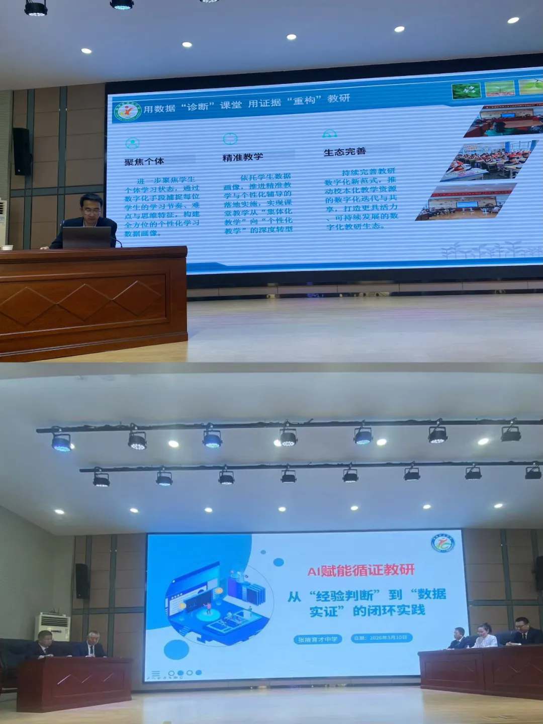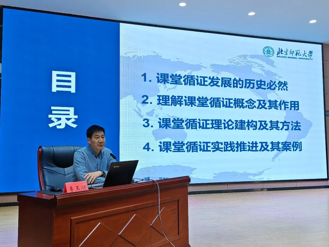 李玉顺教授以《基于课堂理解的循证教研模式创新与实践》为题,从理论高度和实践维度阐释了AI赋能循证教研的核心内涵、实施路径和关键要点,为参会人员搭建了系统的理论框架;秦义滨结合南宁市的实践经验,深入解读AI赋能教研工作的实施策略与成果转化路径,为张掖市提供了可借鉴的实践思路。龚振分享《从经验到循证:AI赋能教师专业成长的育才路径》,以学校实践探索为例,全面展现了AI技术在教育教学中的具体应用和实施成效。