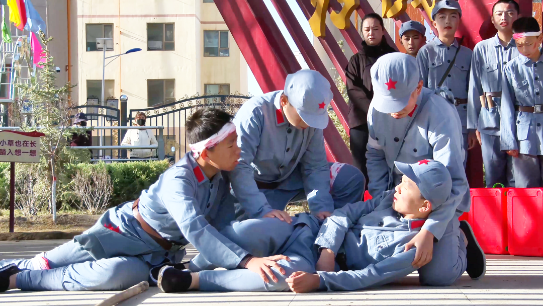 上午8时30分,高台县中国工农红军西路军主题公园内庄严肃穆。来自高台一中、职业中专等5所学校的代表队队列整齐、精神昂扬。在全场注目下,各代表队依次接过“高台县红色基因传承先锋队”旗帜,队员们神情坚定,目光中凝聚着传承红色基因的坚定决心。“接过这面旗帜,我感受到的不仅是一份荣誉,更是一份传承红色基因的责任。”高台一中学生何江话语铿锵,“我们会带着这份责任,重走长征路、铭记英烈志,把革命精神融入青春血脉。”随着共青团员代表吹响激昂的冲锋号,队伍迈着整齐的步伐,从主题公园东入口出发,踏上红色征程。