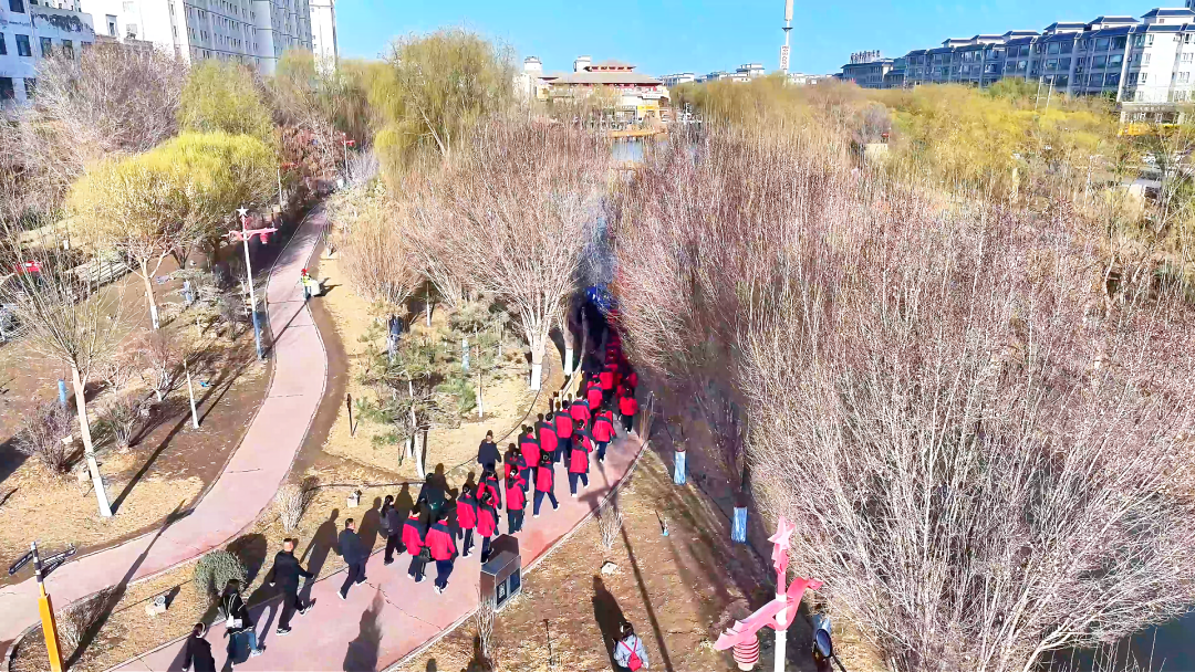 在国家城市湿地公园,队员们参观了“传承红色基因”主题展板,一幅幅珍贵的图片、一段段详实的文字,带领大家重温革命岁月、感悟初心使命;在“重走微缩长征路”国防教育体验环节,大家通过模拟长征场景,真切体会到革命征程的艰辛与不易,更深刻理解了长征精神的丰富内涵。“作为思政课教师,能带领学生参与这样的活动,我觉得意义非凡。”高台三中思政课教师杨光卿表示,“我们不仅是徒步,更是在追寻先烈的足迹,希望通过这种沉浸式体验,让红色精神在学生心中生根发芽。”
