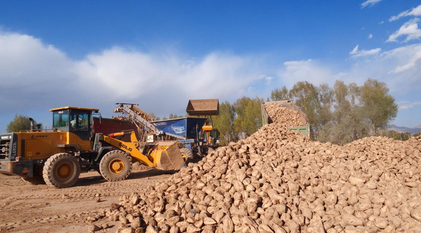 金秋时节,广袤的焉支大地处处唱响丰收欢歌。在国营山丹农场的甜菜种植基地里,自走式甜菜收获机往返于田间地头,打叶、削顶、挖掘、清洁,一道道工序在有条不紊地进行着。基地负责人白正喜告诉记者,由于今年采用了双膜覆盖、节水滴灌等高效节水种植技术,在今年长时间干旱条件下,仍获得较高产量。