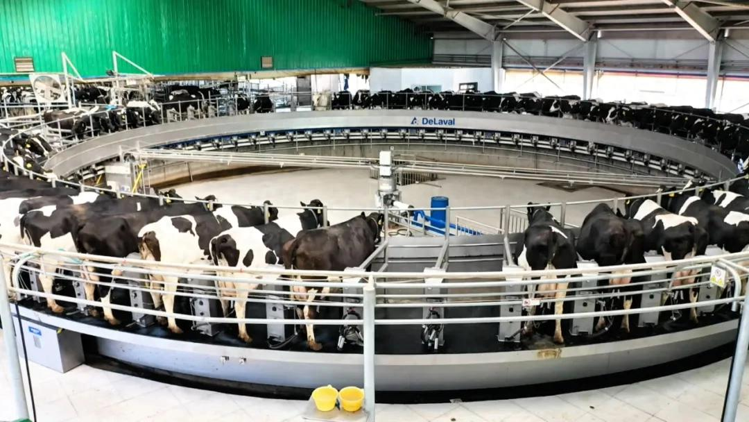 在甘肃燕塘传祁牧业有限公司的现代化牧场里,科技感十足的场景颠覆了人们对传统养殖的认知。全自动转盘挤奶机高效运转,奶牛有序排队“上岗”,产奶量、健康状况等数据实时呈现于中央控制系统。这座由行业龙头企业合资建设的牧场,是高台县精准招商结出的硕果,也成为畜牧业智慧化转型的生动样板。牧场饲养兼繁育经理殷欢介绍:“目前全群存栏约5800头,日产鲜奶达103吨,挤奶牛单产达42.5公斤。通过精准饲喂系统,我们实现了从粗放管理到精细科学的跨越,确保了奶牛单产和牛奶品质的双重提升。”