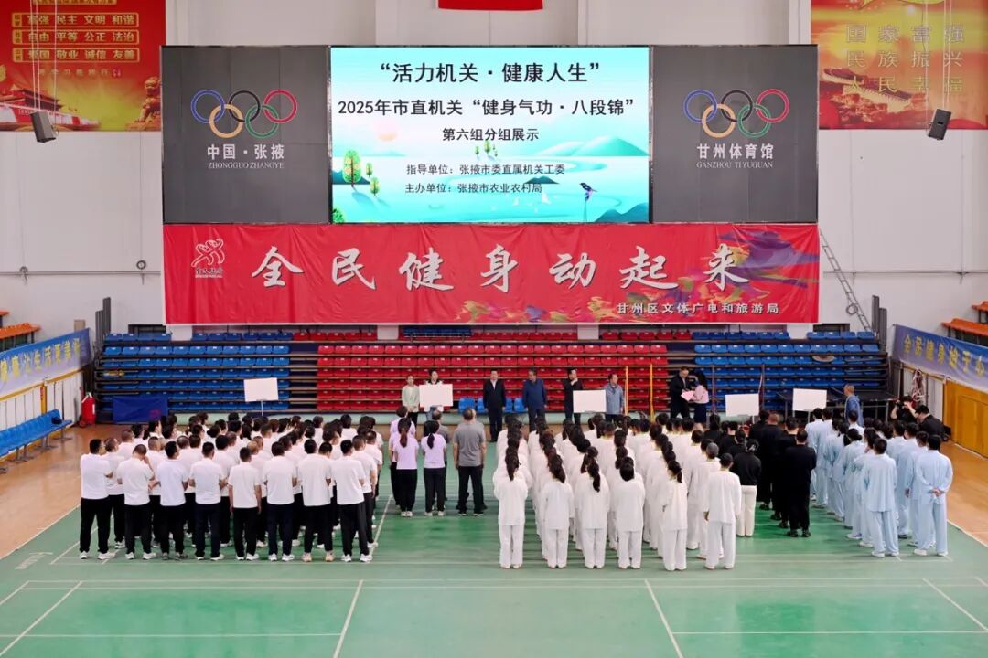 9月19日,由张掖市委直属机关工委主办、市农业农村局牵头组织的市直机关第六组(农口系统)八段锦展演预赛如期举行。张掖市林业和草原局代表队以整齐划一的动作、昂扬饱满的状态,喜获第一名的好成绩。