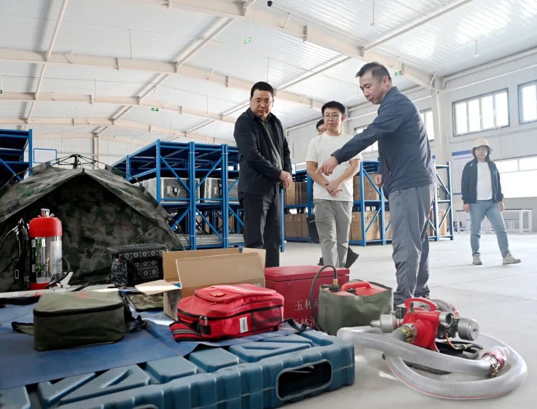 督查组到张掖市森林草原防火物资储备中心,深入防火物资储备库实地查看扑火机具、消防车辆、通信指挥等主要防火物资储备数量、保养状态及存放环境,详细询问物资储备、维护保养、应急调配、消防演练等情况,并现场查看了部分器材的操作演示。