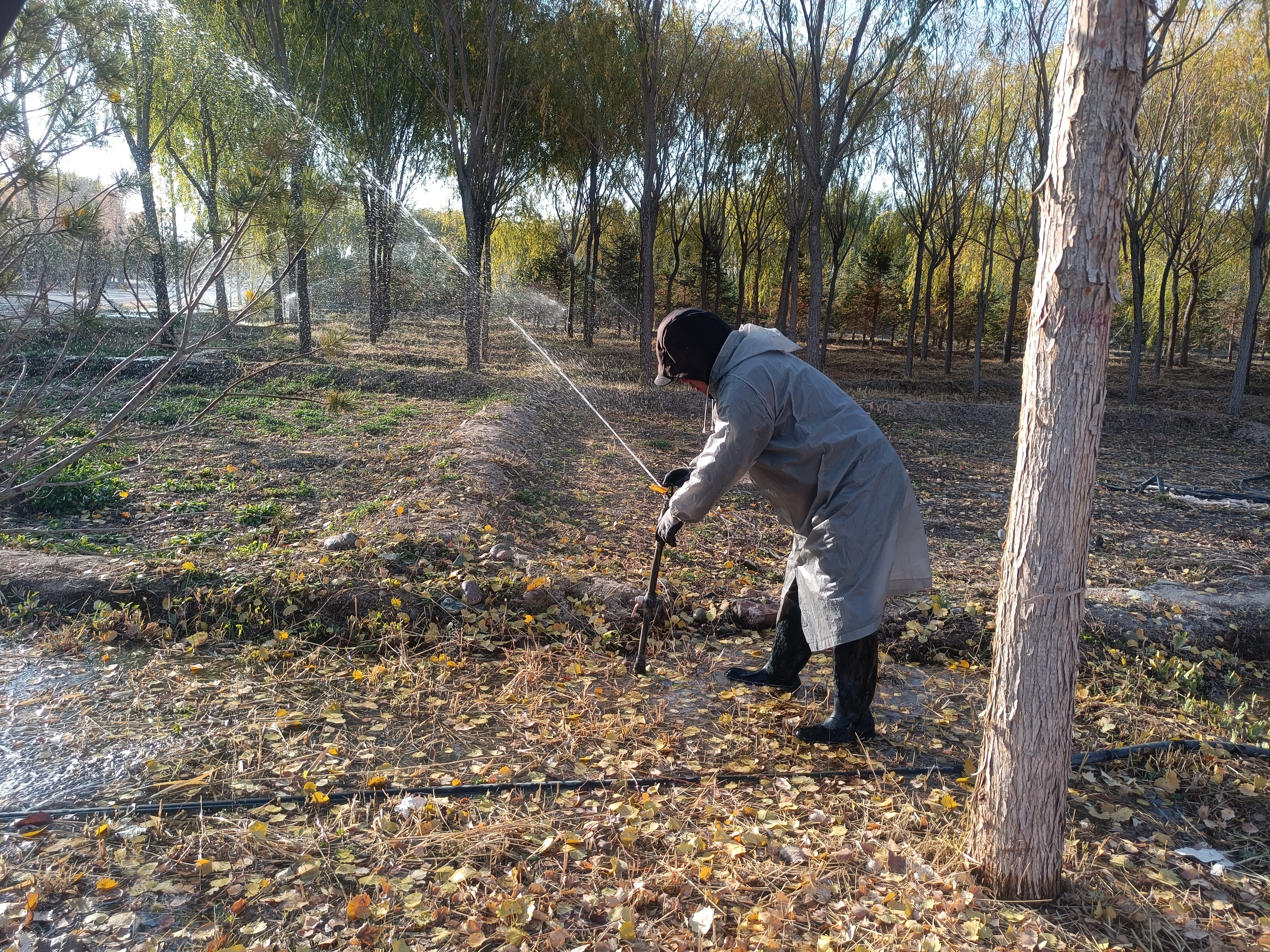 冬灌是增强苗木抗寒能力、改善土壤墒情的关键措施。林场提前制定周密方案,采取“分类施策、分段灌溉”的工作方法,科学调配水资源,合理安排灌溉时序。在实施过程中,技术人员全程跟班作业,及时处理“跑冒滴漏”现象,确保灌溉无盲区、无浪费,切实提高灌溉质量。