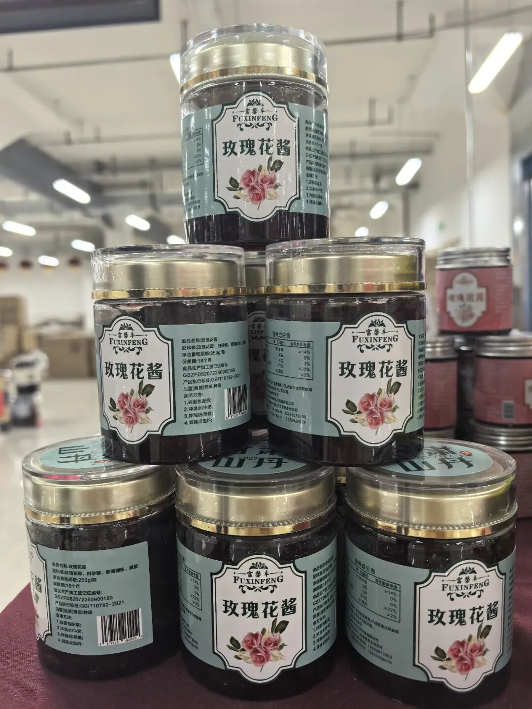 在年货节的特色农产品展区,老军乡老军村富馨丰农牧科技发展有限公司的展位前人头攒动。一罐罐印有“龙玫1号”标识的玫瑰花苞茶、玫瑰花酱,成为市民争相采购的“年货新宠”。“我们的玫瑰花酱采用传统古法与现代工艺结合,从采摘到加工不超过6小时。新鲜的玫瑰花瓣经去杂、色选、消毒后,与本地蜂蜜按黄金比例混合,最终形成色泽红亮、口感醇厚的花酱。玫瑰花苞茶则以未完全绽放的花蕾为原料,通过低温烘焙锁住芳香物质,冲泡后茶汤金黄,香气馥郁。”工作人员介绍。