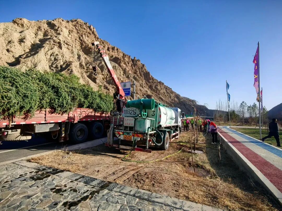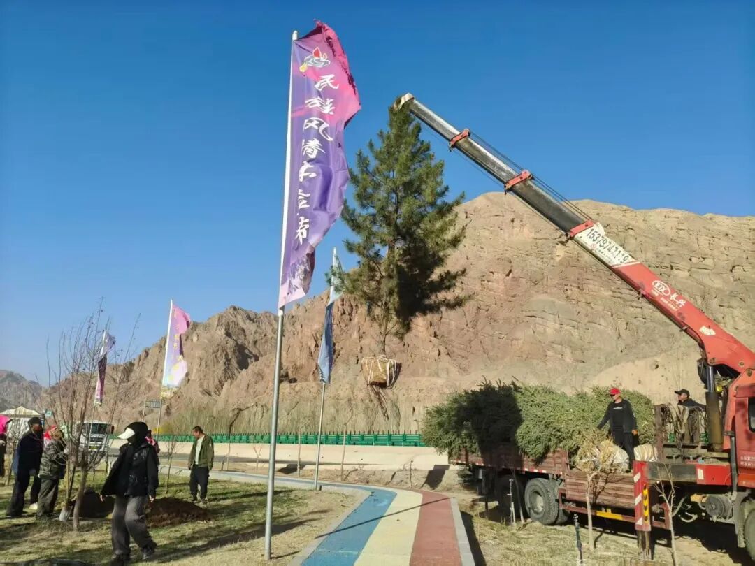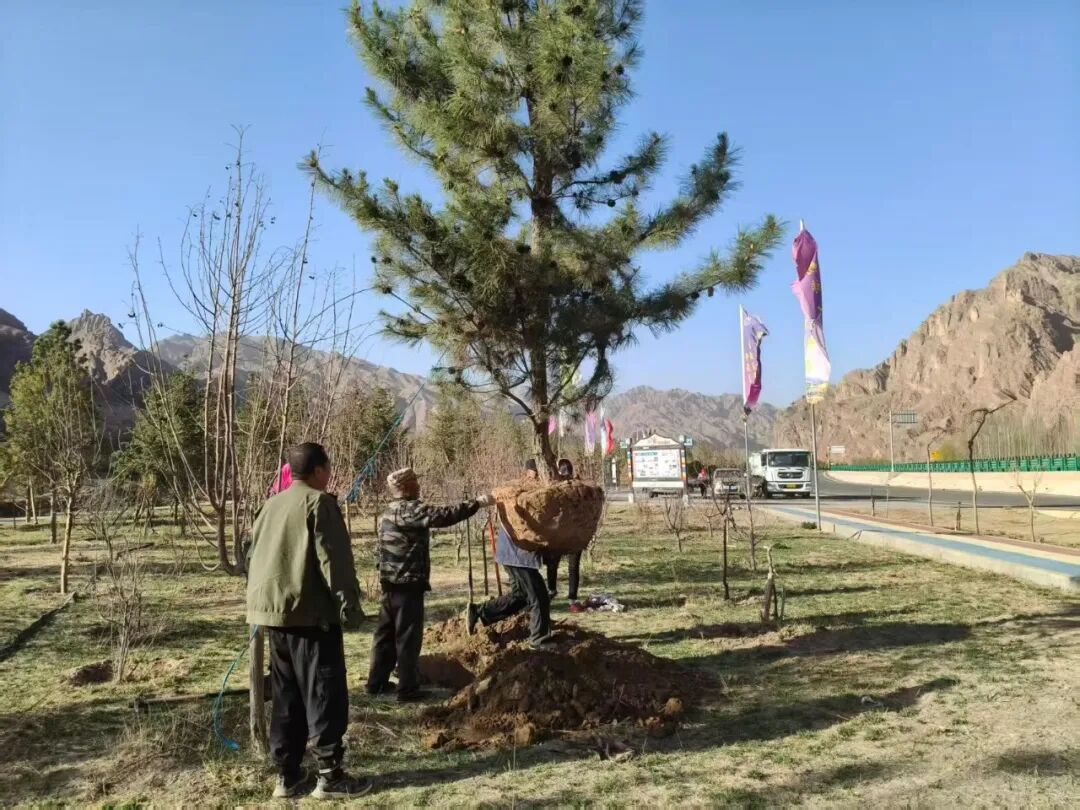 此次在康乐镇入县山口植树造林项目,紧扣“祁连山门户·多彩裕固·生态迎宾”核心定位,摒弃传统单一植树模式,将祁连山生态保护与裕固族民族文化深度融合,因地制宜、精准施策,走出一条生态建设与文化传承协同发展的特色造林之路。在树种选择上,始终坚持本土化、适应性原则,优先选用青海云杉、祁连圆柏等常绿乔木,筑牢生态防护骨架,搭配馒头柳、垂柳等乡土树种,兼顾防风固沙与景观效果;辅以丁香、连翘、榆叶梅等高原特色花灌木,以及白榆等一些本土地被植物,打造层次丰富、四季有景的高原植物群落,既适配肃南高寒气候条件,又最大限度保留地域生态特色。