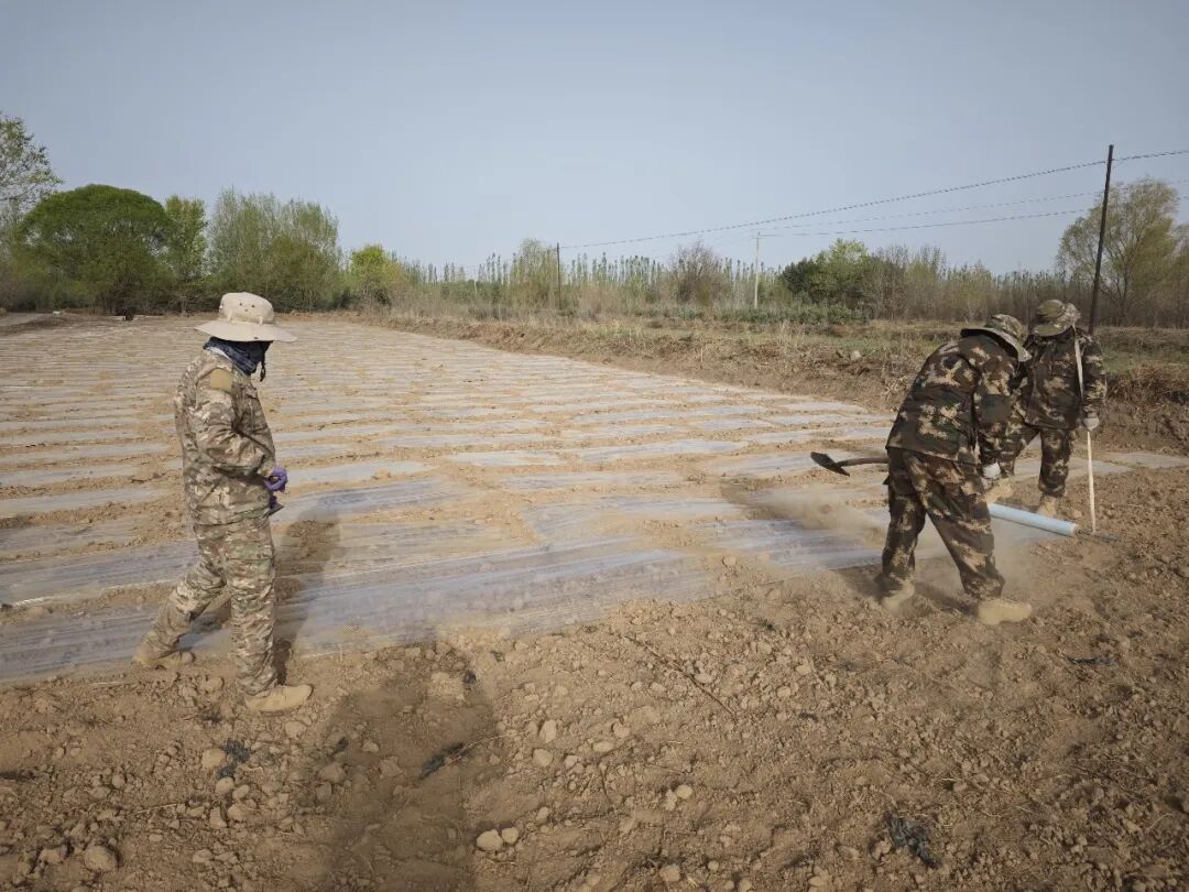 作业现场,林场职工们耕整土地、清理杂物、划线开沟、撒播种子、敷沙盖土,分工协作、配合默契。最后,全员合力开展地膜铺设作业,全力保障种子整体出苗率和成活率。