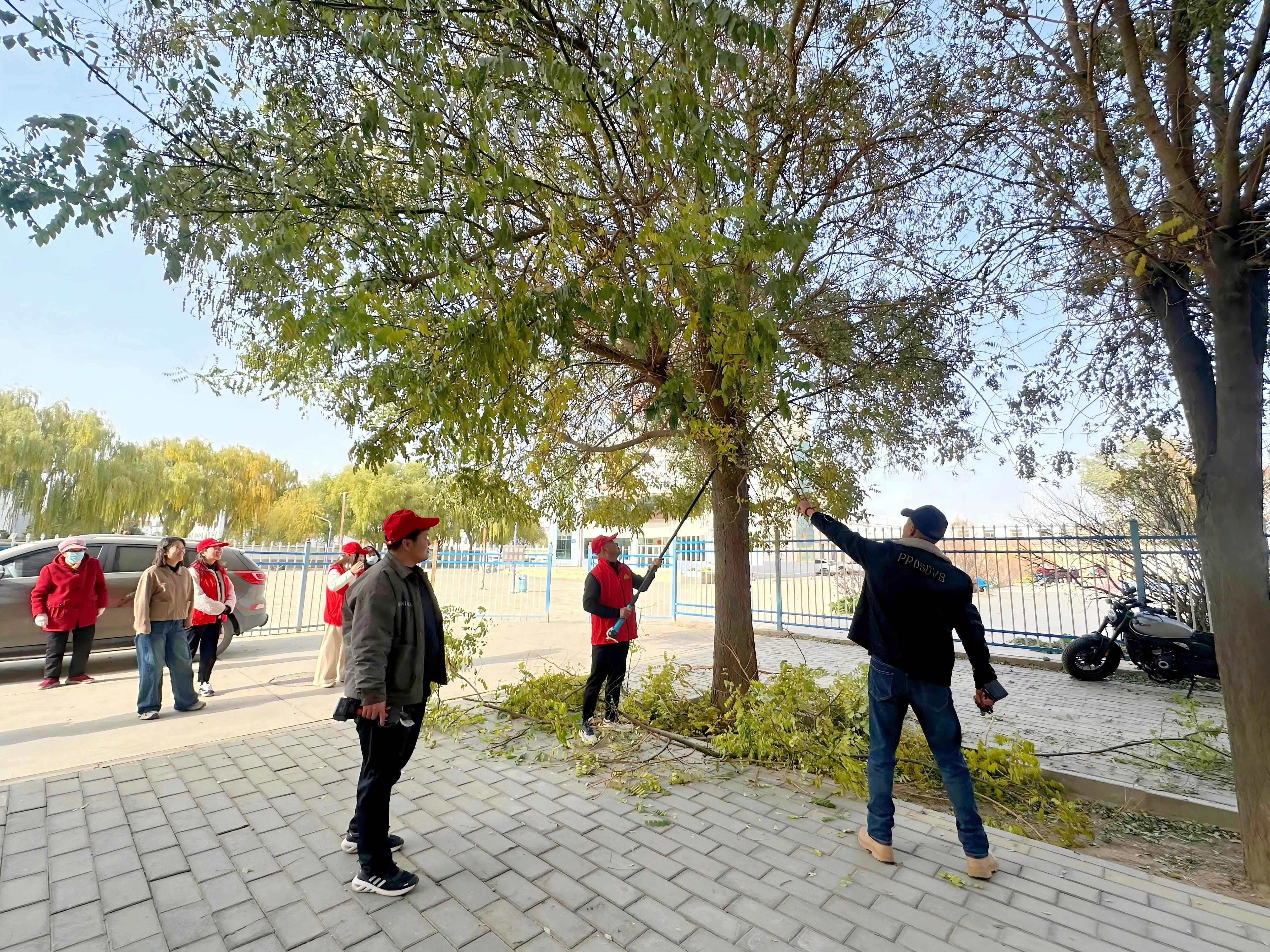学习结束后,全体党员深入社区街巷清理生活垃圾、整治卫生死角,改善社区居住环境。在社区广场绿化带,市林科院专家向社区工作人员和居民讲解冬季树木整形修剪的要点并进行现场示范,党员干部们手持修剪工具分工协作,修剪枯枝、病虫枝,清理杂草,对社区周边绿化苗木进行精细化养护。同时,组织人员在社区广场设立宣传点,通过现场宣讲、答疑等方式,向过往居民普及生态环保知识和森林草原防火安全常识,提醒大家注意冬季用火安全,倡导绿色低碳生活方式。活动现场,党员干部亮身份、作表率,与居民群众亲切交流,倾听需求建议,用实际行动拉近了党群距离。