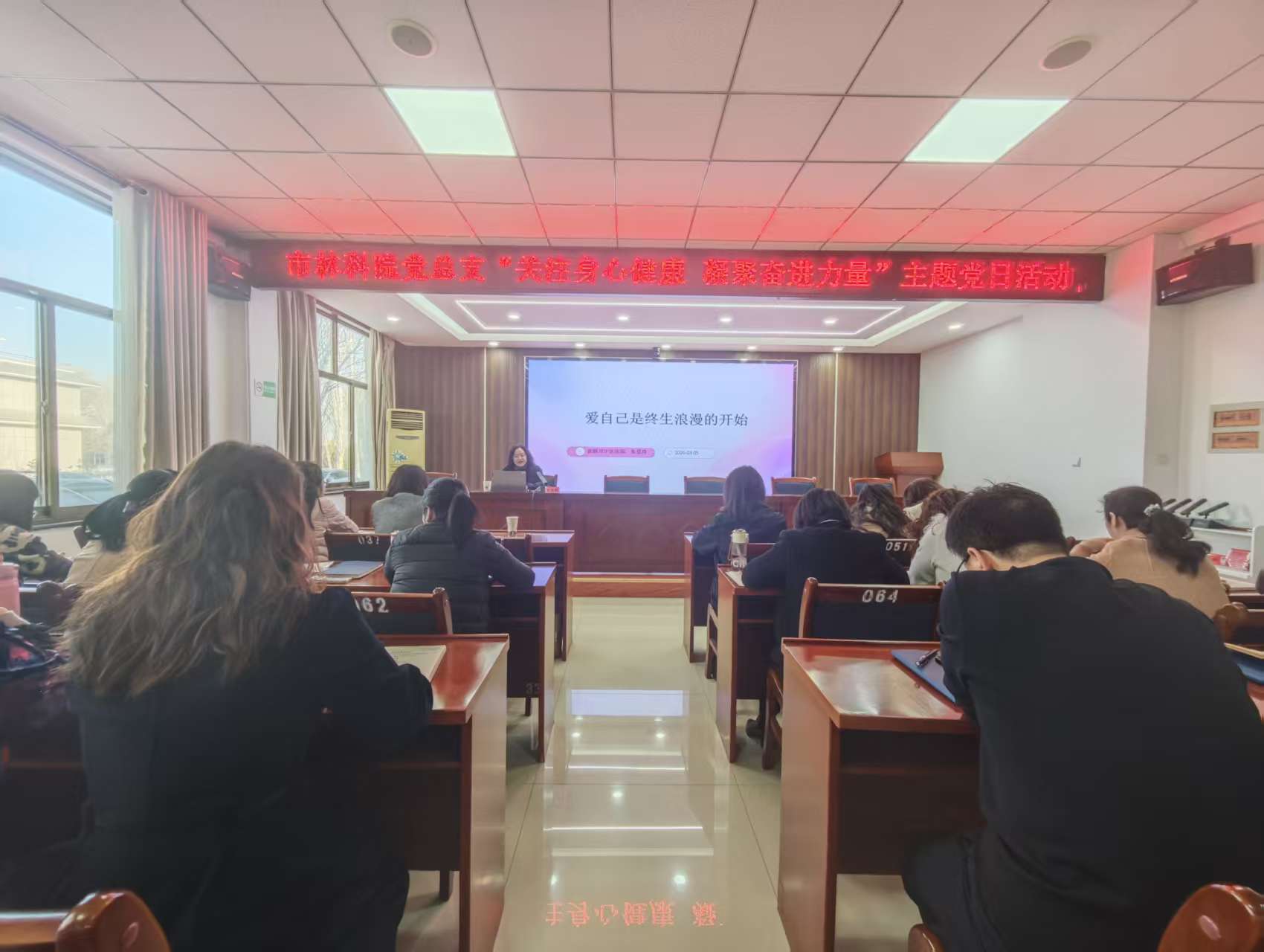 活动特邀张掖市中医院妇产科主任、副主任医师朱爱玲作健康知识专题讲座。讲座围绕不同年龄阶段常见健康问题,结合丰富临床经验,讲解预防建议和养生技巧,还为现场干部职工答疑解惑,互动交流热烈,让大家收获满满、受益匪浅。