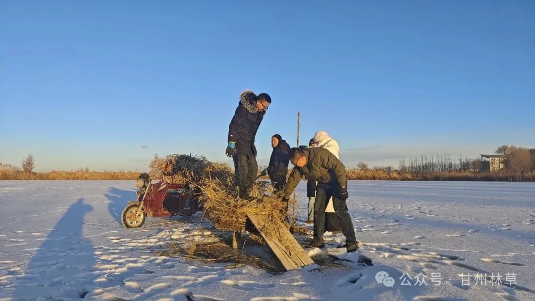 针对冬季候鸟栖息需要,区林草局野生动物保护管理站组织工作人员,深入张掖湿地公园鹤影湖等重点区域,通过搬运芦苇、搭建人工鸟巢等方式,为斑头雁、凤头鸊鷉等鸟类营造安全、温暖的栖息场所,切实提升越冬候鸟的生存保障。