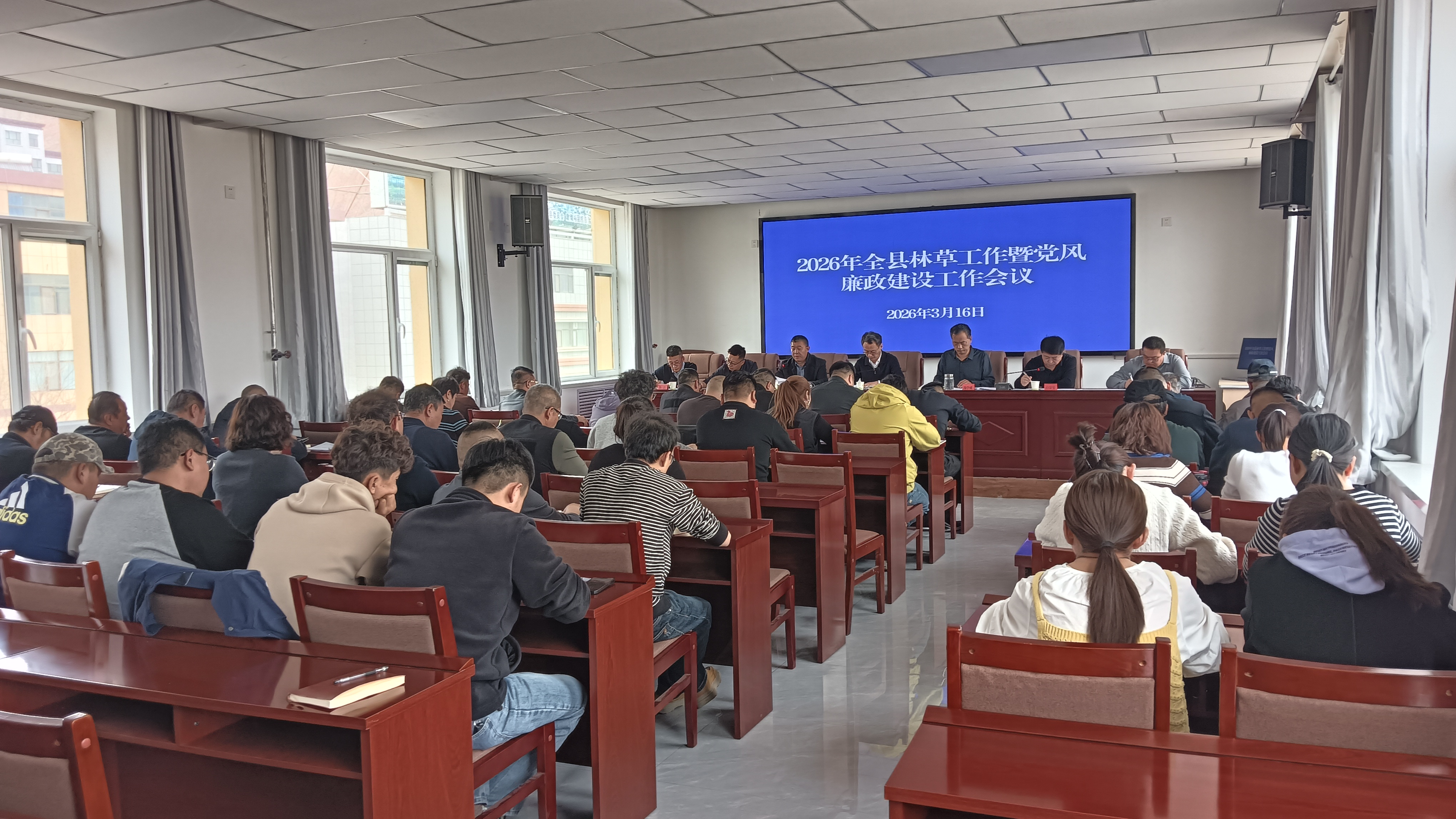 为深入学习贯彻习近平生态文明思想,全面落实中央及省市县决策部署,扎实推进林草“十五五”规划开好局、起好步,3月16日,肃南县林草局组织召开2026年全县林草工作暨党风廉政建设工作会议,县政府、县纪委监委分管领导及全县林草系统干部职工、相关单位负责人参加会议。