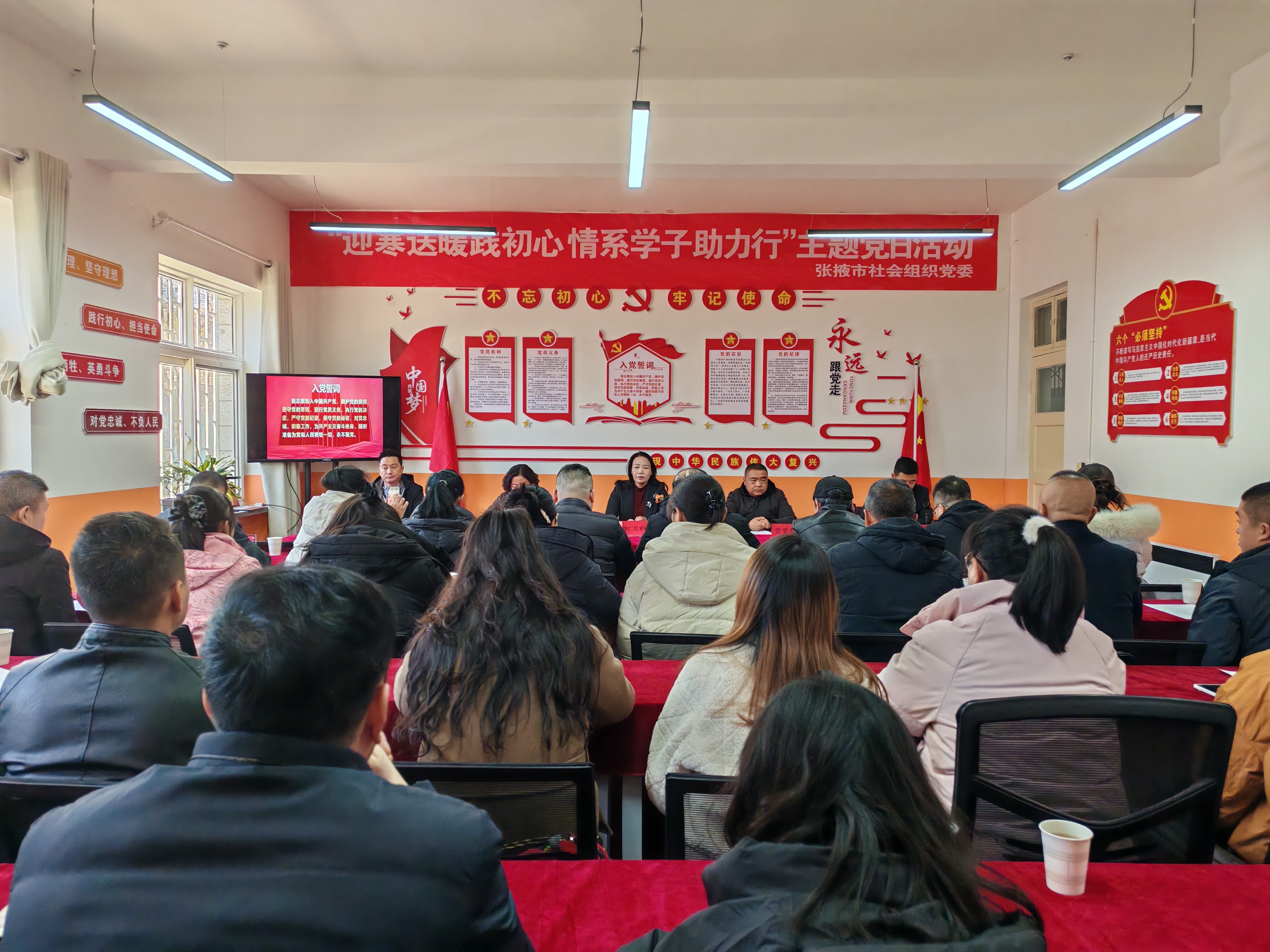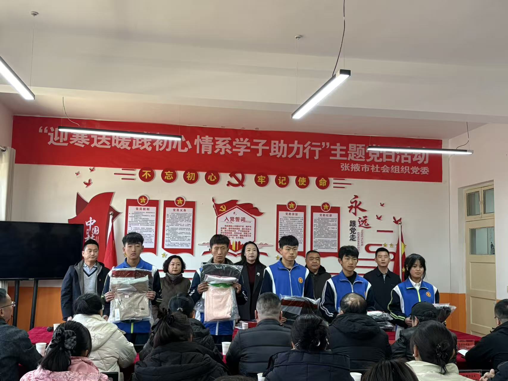 11月18日,市社会组织党委在张掖市育才技工学校举行 “迎寒送暖践初心,情系学子助力行”主题党日活动。市属11个社会组织党组织书记、党员、预备党员、学校师生代表约40人参加活动。张掖市育才技工学校联合党支部书记介绍资助困境家庭学生基本情况,张掖市慈善协会向10名困境家庭学生发放捐赠物资和助学金。受助学生代表表示将这份爱心化为学习的动力,珍惜时光、刻苦钻研,以优异的成绩回报社会、回报学校。
