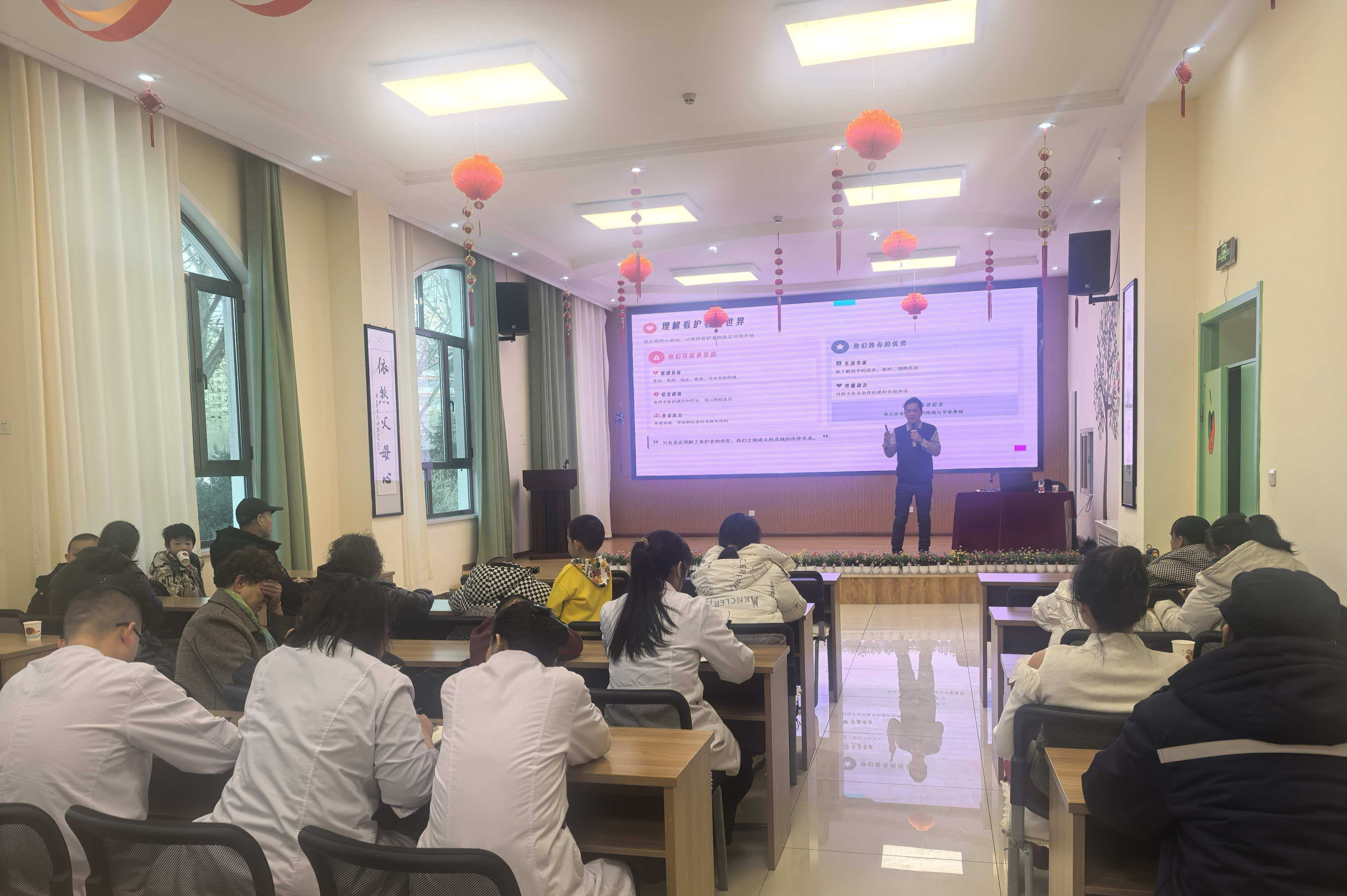 省康复中心郭旭升主任以《建立连接的桥梁——与孤独症儿童看护者的沟通技巧》为题,结合深厚的临床实践积淀,为我院康复治疗师及儿童家长倾情传经送宝。郭主任深入浅出剖析了孤独症儿童看护沟通中的难点痛点,现场答疑解惑,互动氛围热烈浓厚。