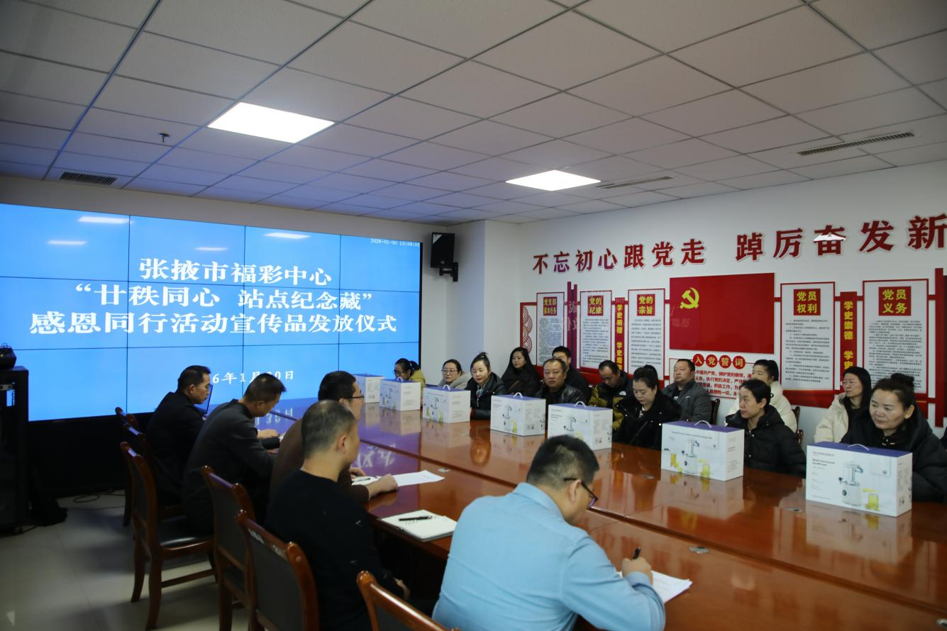 为感谢各销售网点长期以来的辛勤付出与鼎力支持,凝聚福彩事业发展合力,近日,张掖市福彩中心举办“廿秩同心 站点纪念藏”感恩同行活动纪念宣传品集中发放仪式,为全市2025年即开票销售额达到9.6万元以上的156个销售网点发放纪念宣传品。