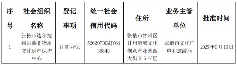 张掖市民政局行政许可公告(202537号)