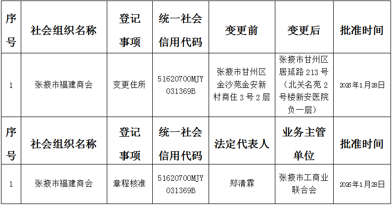 根据《社会团体登记管理条例》规定,以下社会组织准予变更登记和章程核准,现予以公告。