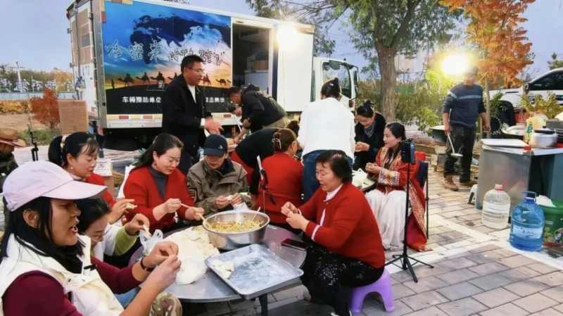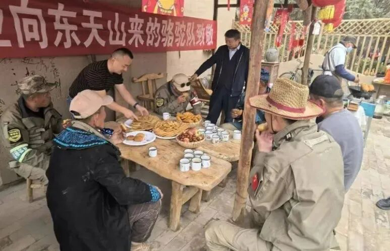 在速展七彩田园,各族村民早已备好了张掖小饭、饺子、特色油糕、油香等美食,还带来了牛奶、方便面等补给物资,盛情迎接远方的客人。大家围坐在一起,畅谈旅途的所见所闻,分享乡村振兴的喜人成果。